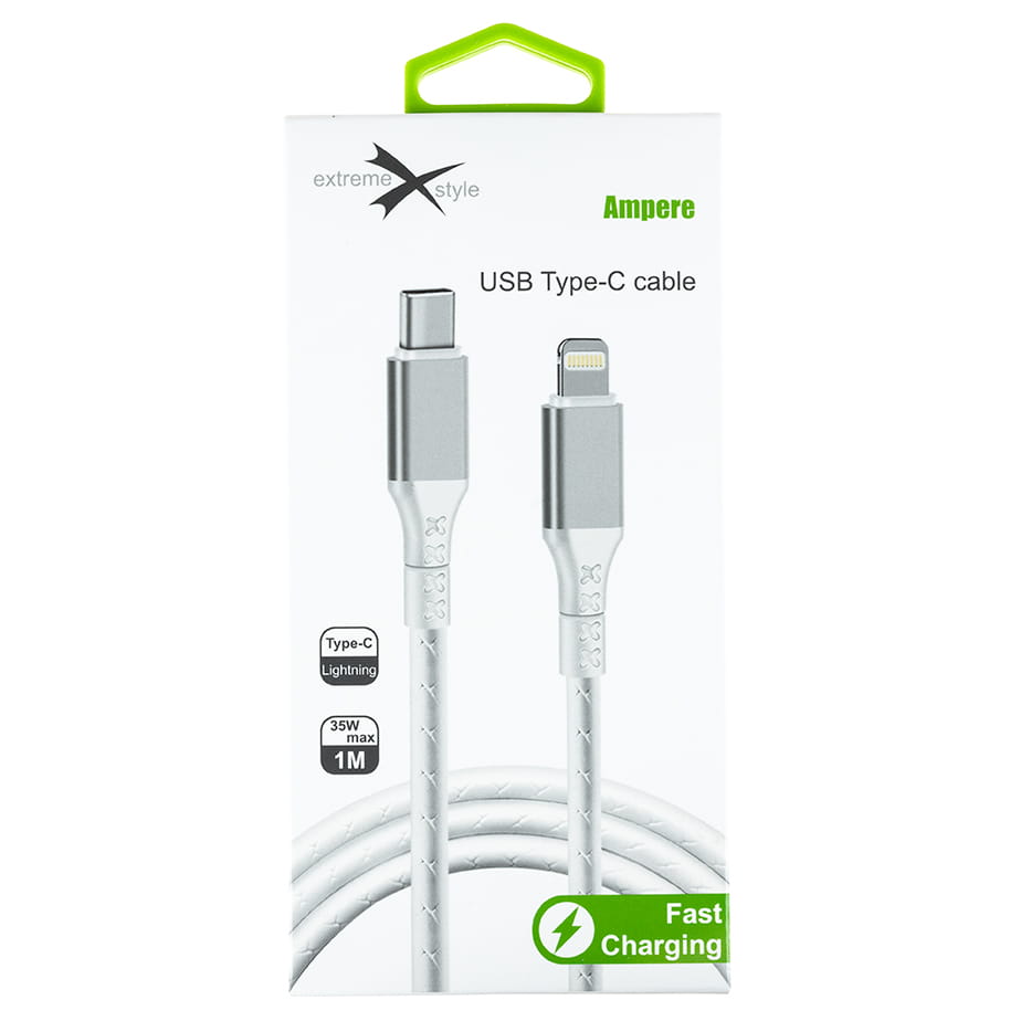 Wzmocniony kabel Ampere USB typ-C - iPhone Lightning - eXtremestyle® - 1 m - biały