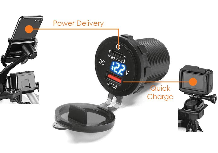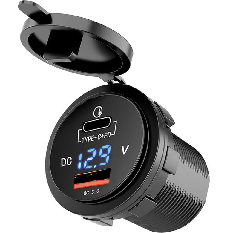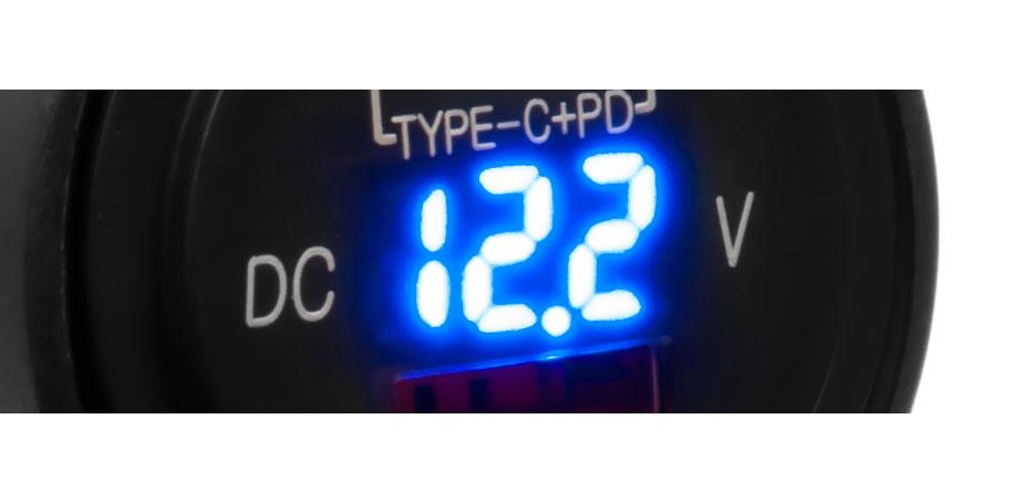 Ładowarka / Gniazdo do motocykla - USB-C + USB + woltomierz – MUS12