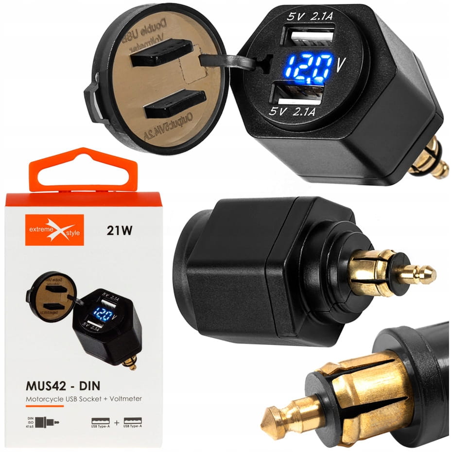 Ładowarka / Gniazdo DIN - 2 x USB + woltomierz - do motocykli BMW i Triumph - MUS42