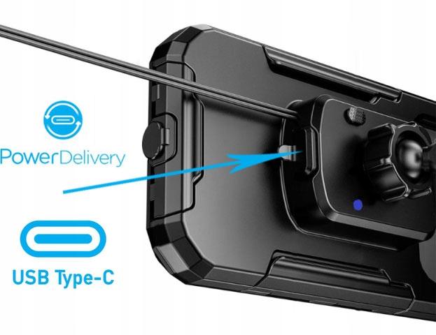 Uchwyt motocyklowy na telefon - wodoodporny z ładowarką indukcyjną i szybką USB-C - 167-HARD-W-PD