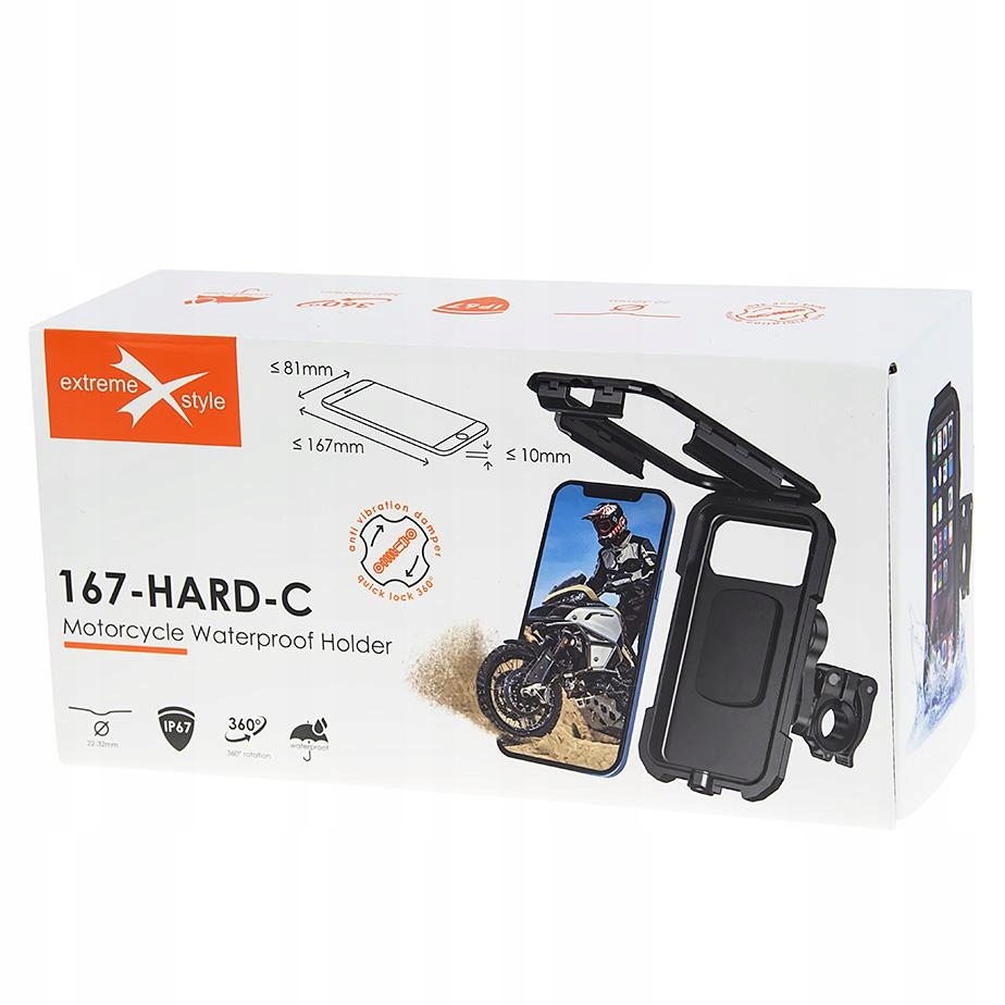 Wodoodporny uchwyt motocyklowy na telefon (max.167x81mm) - Antywibracyjny - 167-HARD-C
